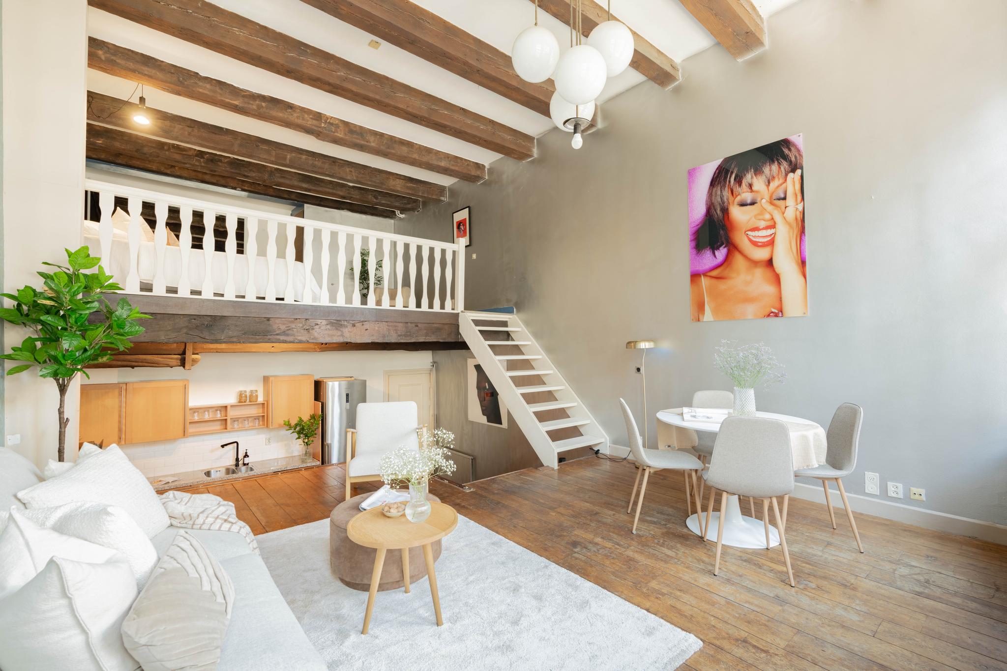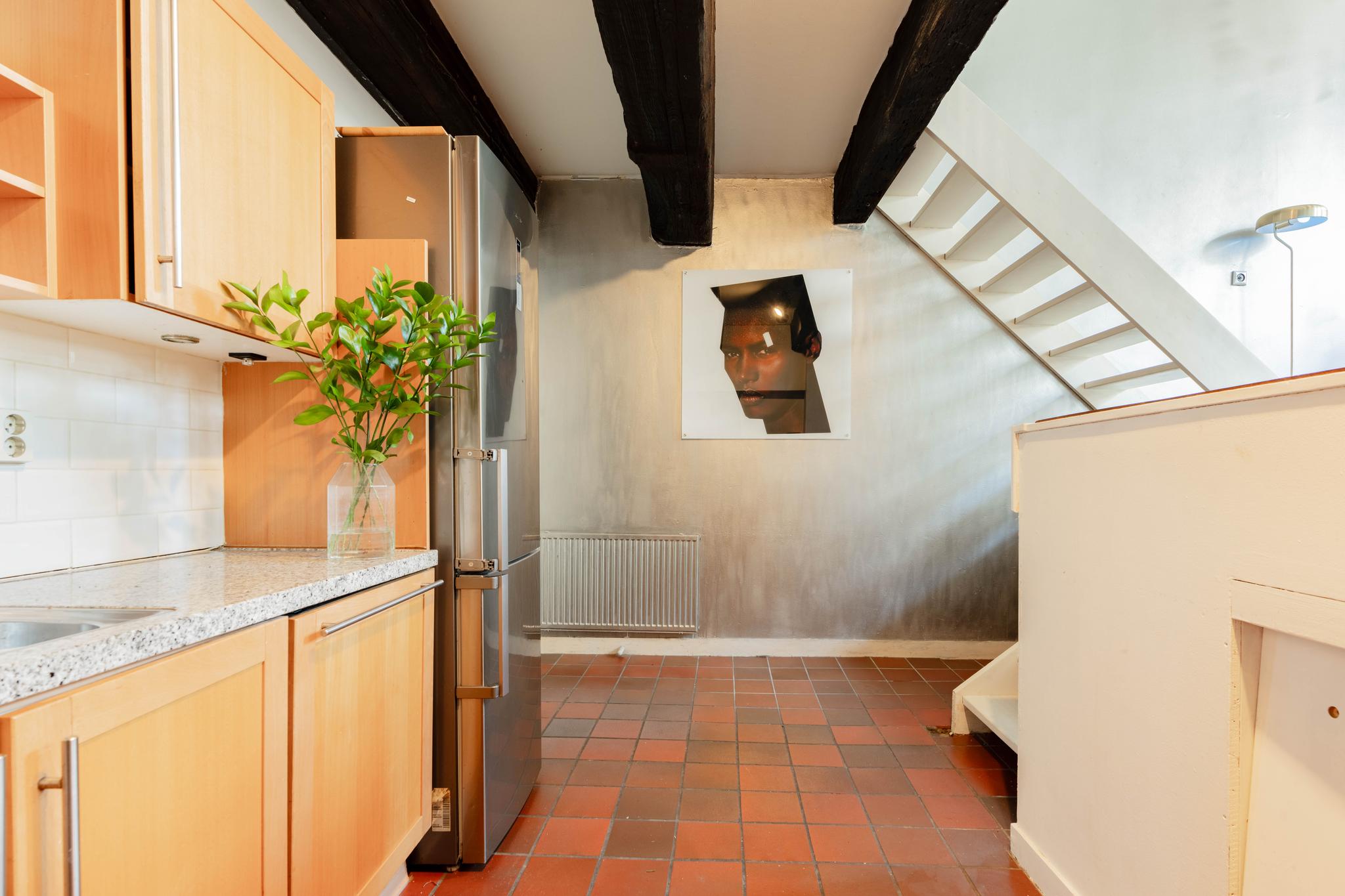 In het hartje centrum bieden wij dit appartement van 71 m² aan. De woning met een split-level indeling is zeer ruim van opzet en heeft veel lichtinval door de grote mooie raampartijen aan de voorzijde. De houten balken en houten vloer in het woon- en slaapgedeelte geven een fijne sfeer en een huiselijk gevoel. Elke ruimte is van een goed formaat met bij de entree een badkamer, met inloopdouche, wastafelmeubel, toilet en designradiator. Na de hal kom je bij het leefgedeelte. De keuken is in een hoekopstelling en in open verbinding met de woonkamer. Hier is naast de keukenkastjes ook extra bergruimte onder de woonkamer (3,6 m²) beschikbaar met de wasmachine aansluiting. Middels een trap kom je in het woongedeelte met een plafondhoogte van 3,9 meter en een fijn zitgedeelte met ook mogelijkheid voor een eethoek. Op dit moment heeft de woning 1 grote slaapkamer met inbouwkast en biedt de mogelijkheid om een 2e slaapkamer te creëren.