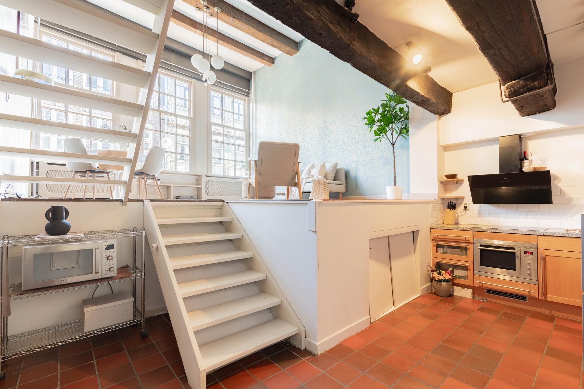 De woning is gelegen in het bruisende hart van Amsterdam centrum in de hippe Zeedijk buurt. Deze buurt kenmerkt zich door het grote aanbod aan diverse restaurants, cafés en (fashion)winkels. Ook culturele voorzieningen zoals musea, de OBA, bioscopen en theaters liggen binnen handbereik. In de directe omgeving bevinden zich de Nieuwmarkt, het Spui, de Kalverstraat, de Dam en de Jordaan. De locatie bevindt zich te midden van alles wat de bruisende binnenstad van Amsterdam te bieden heeft. Met een paar minuten ben je vanaf Centraal Station in een kwartiertje op Schiphol en daar vertrekken treinen, trams, metro’s, pontjes en bussen in alle richtingen van de stad of de stad uit.