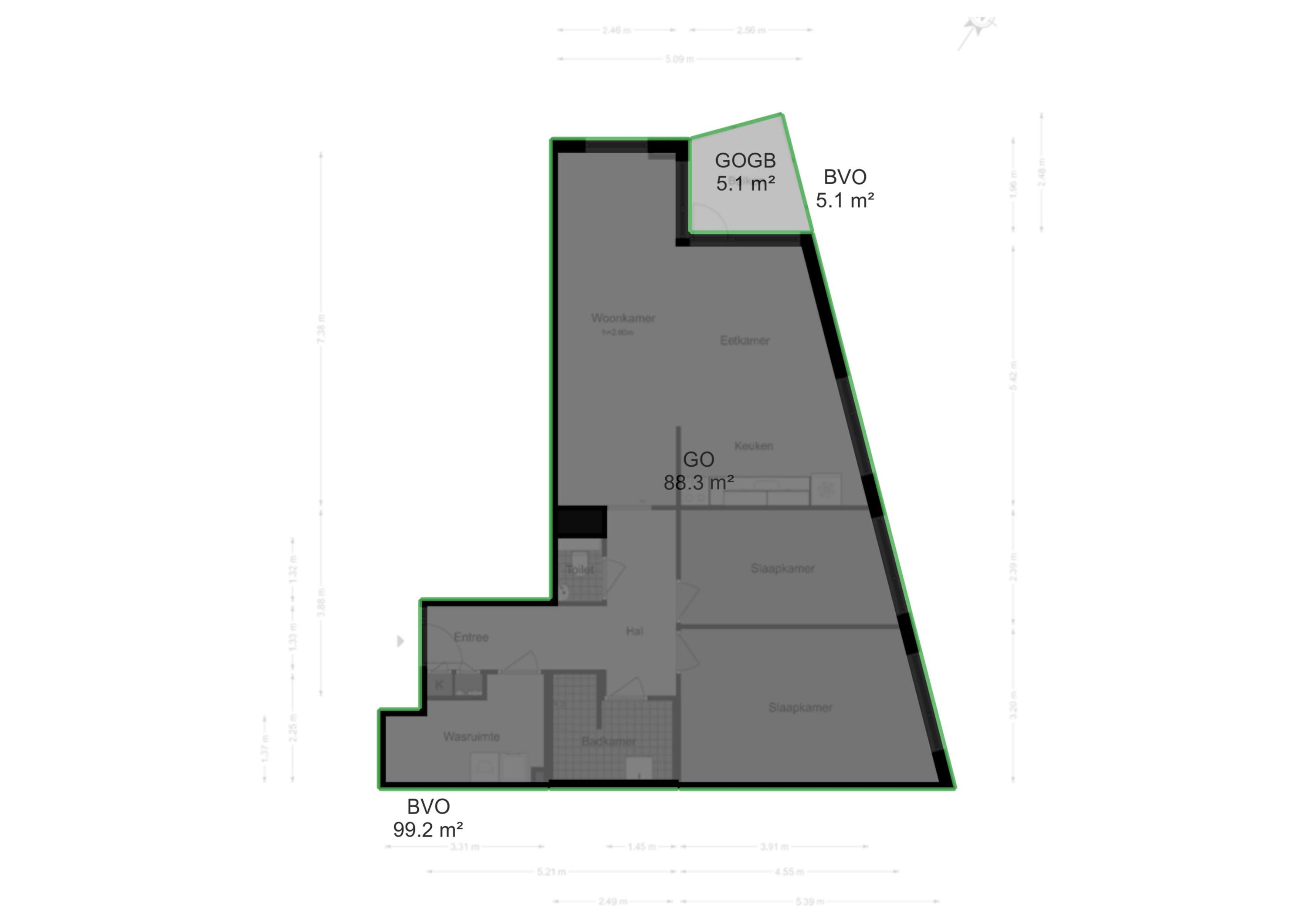 - Woonoppervlak 88,3 m2, 5,1 m2 buitenruimte. Meetrapport beschikbaar;