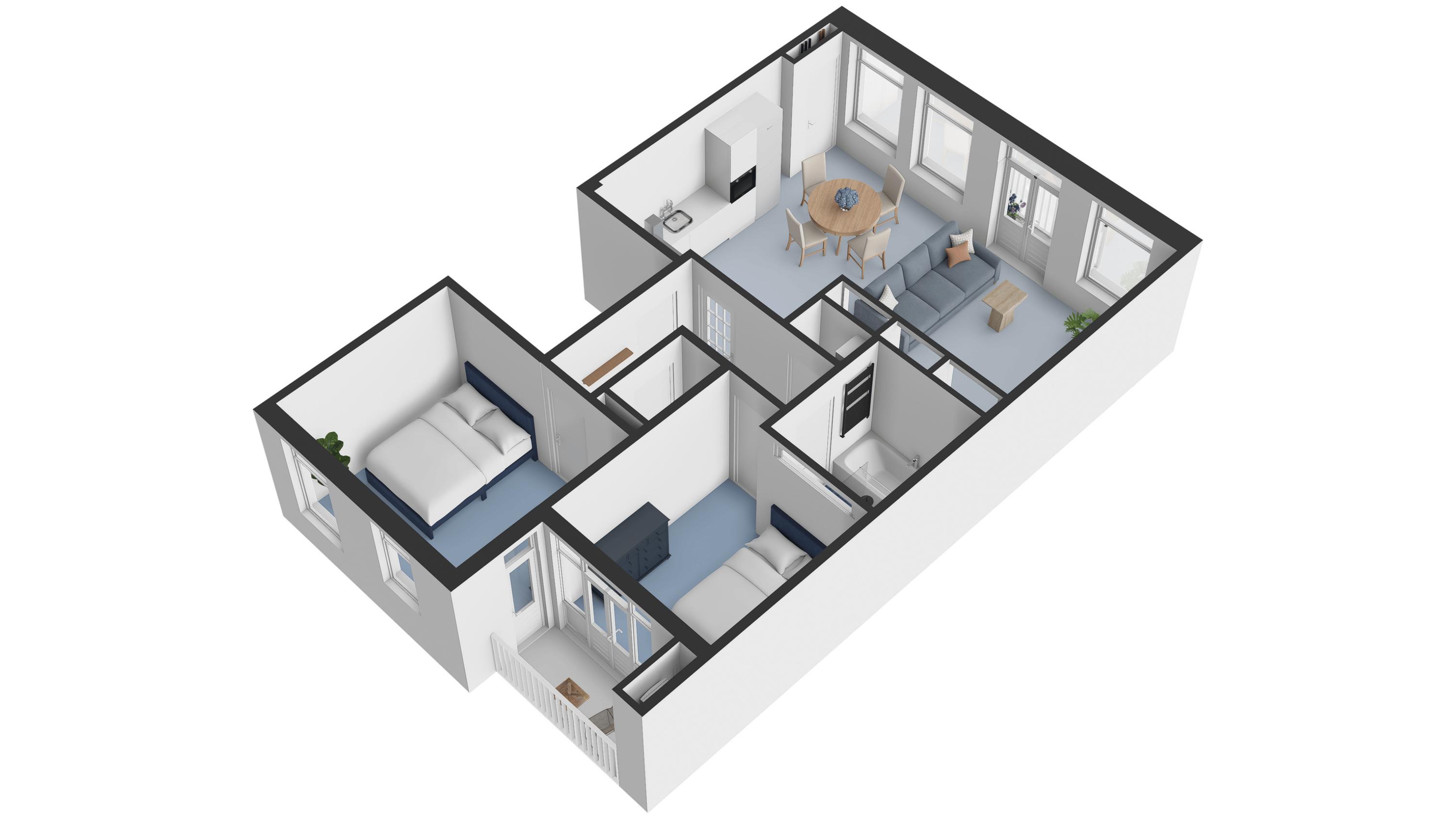 Via de gemeenschappelijke entree bereik je de tweede verdieping. De hal biedt toegang tot alle vertrekken. De ruime woonkamer aan de voorzijde is heerlijk licht door de grote ramen en openslaande deuren naar het Franse balkon, waar je ’s ochtends geniet van de zon. De open keuken is modern uitgevoerd en voorzien van diverse inbouwapparatuur, ideaal voor wie van koken houdt. Aan de achterzijde bevinden zich twee goed bemeten slaapkamers, beiden hebben toegang tot het balkon op het noordwesten, een fijne plek om in de namiddag nog even van de zon te genieten. De badkamer is modern en praktisch met ligbad, separate douche en wastafelmeubel, en er is een separaat toilet. Tevens is er een aparte wasruimte/berging.
