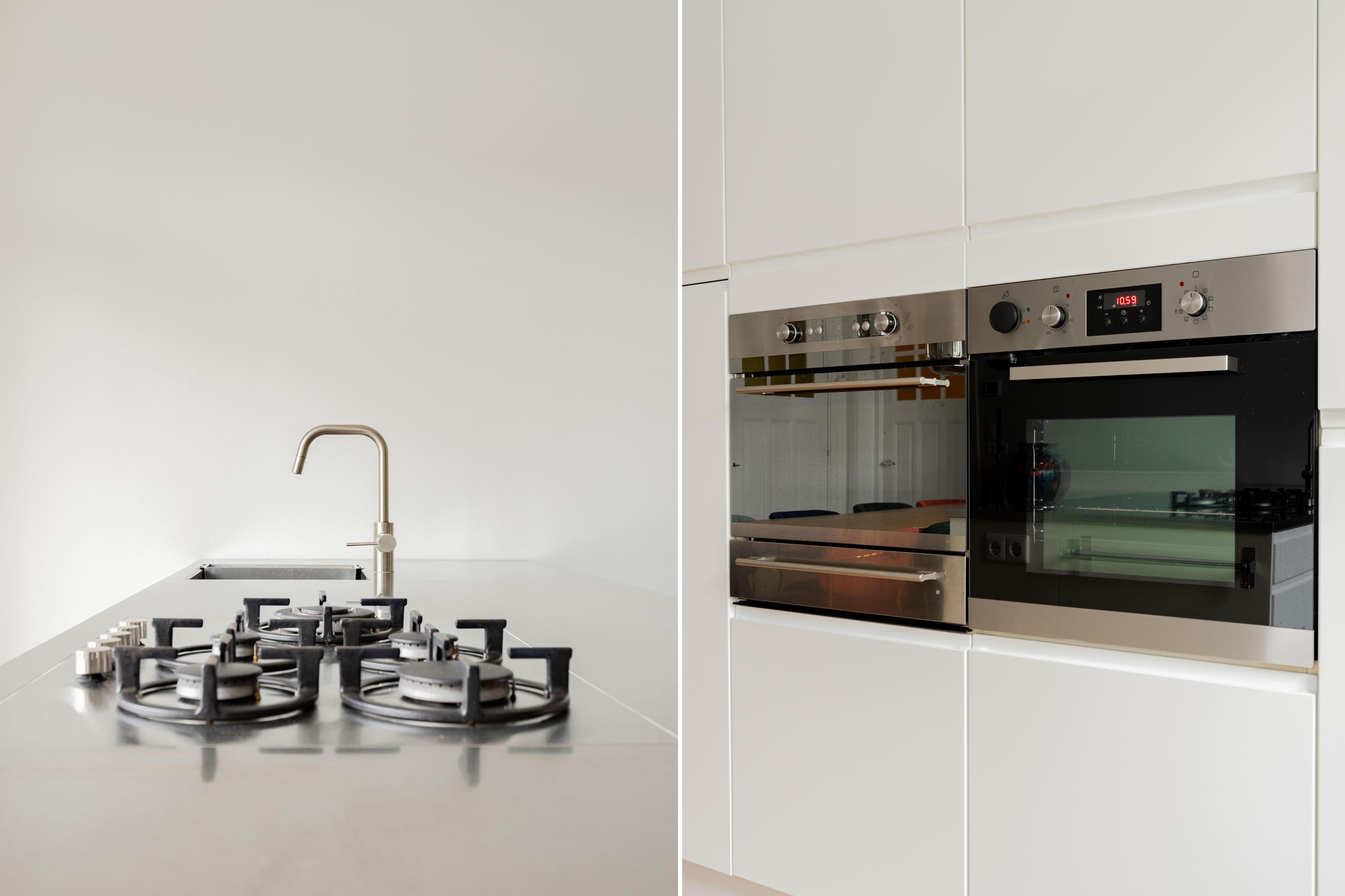 De woonkeuken met inbouwapparatuur zoals een oven en combimagnetron is ruim opgezet en vormt het hart van de woning wat het een ideale plek maakt om uitgebreid te koken en lang te tafelen. Dankzij de brede opzet is er volop ruimte voor een grote eettafel.
