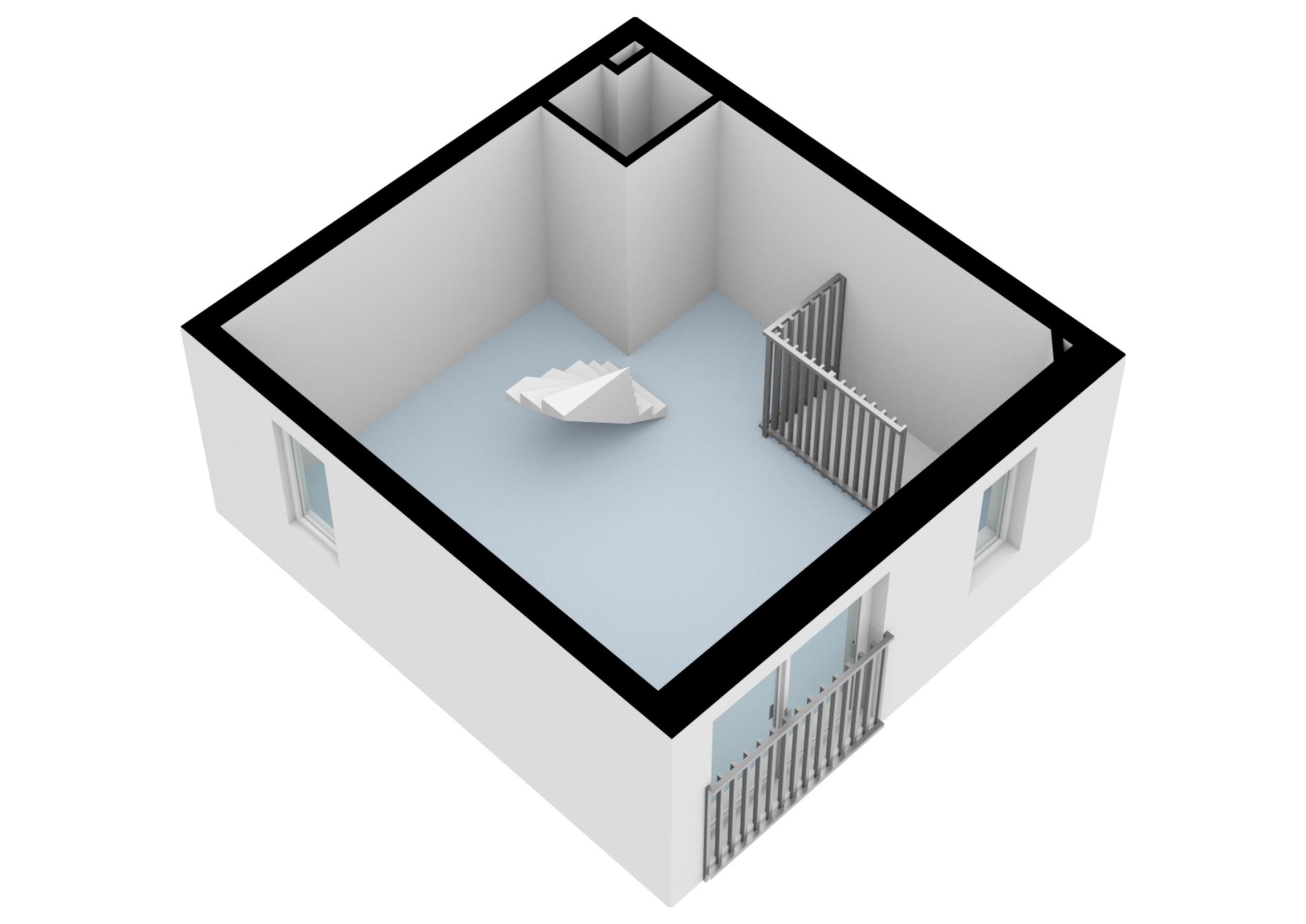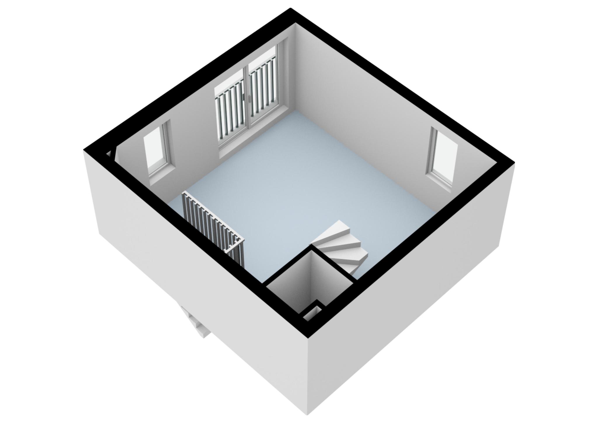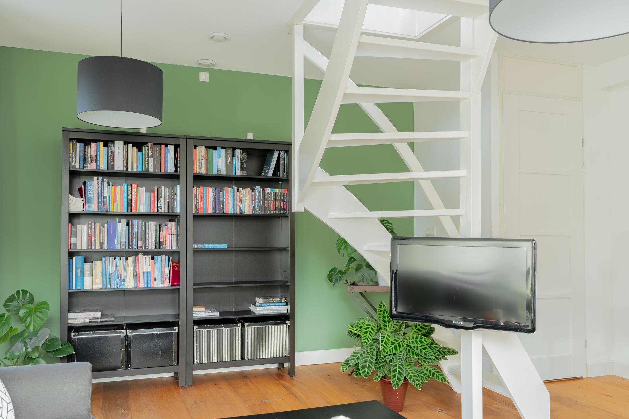 Lichte woonkamer met veel ramen. Vanuit de woonkamer toegang naar de kapverdieping waar de charmante slaapkamer zich bevindt voorzien van dakramen.