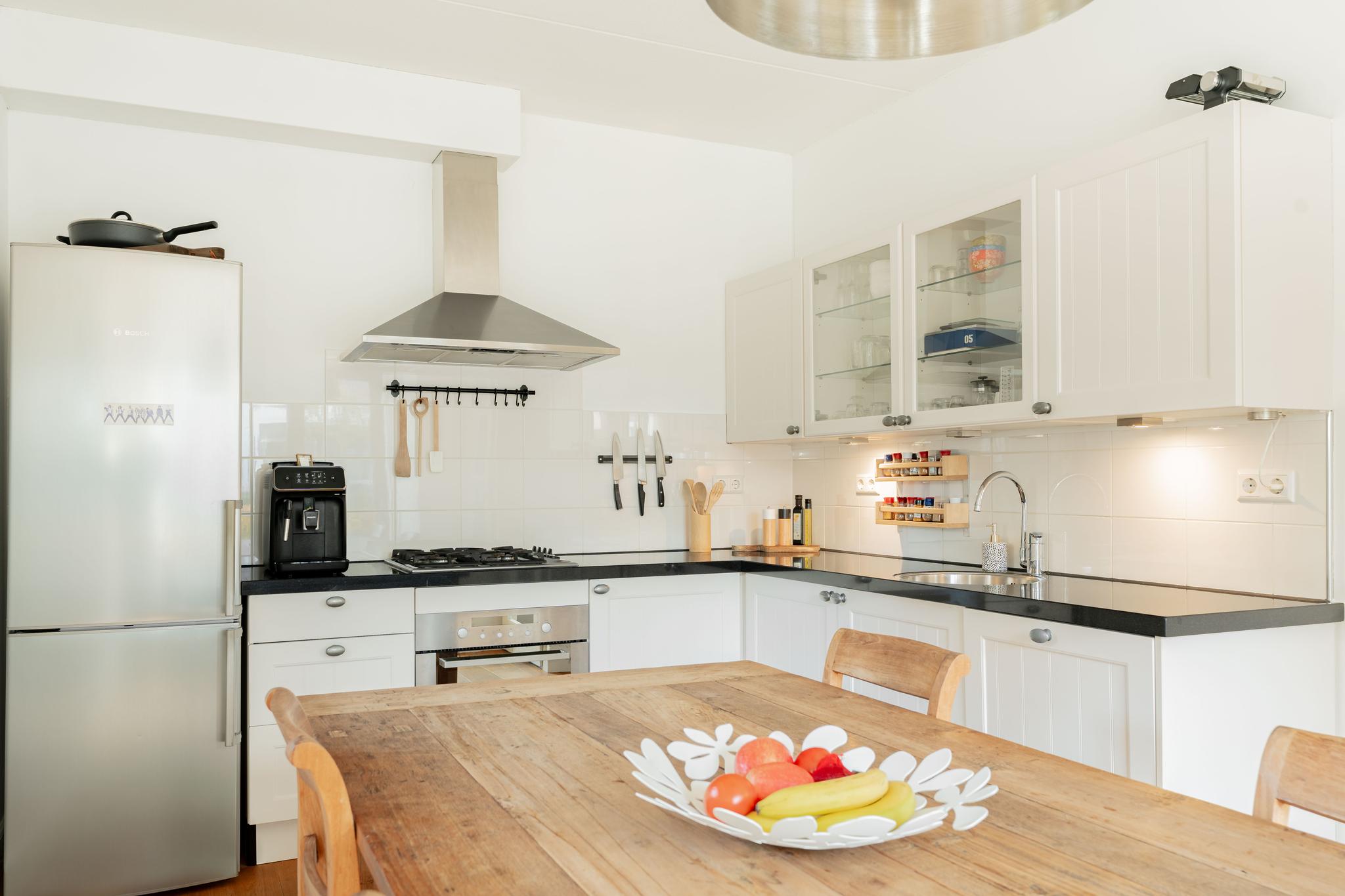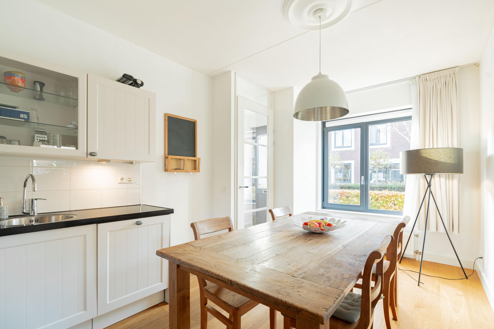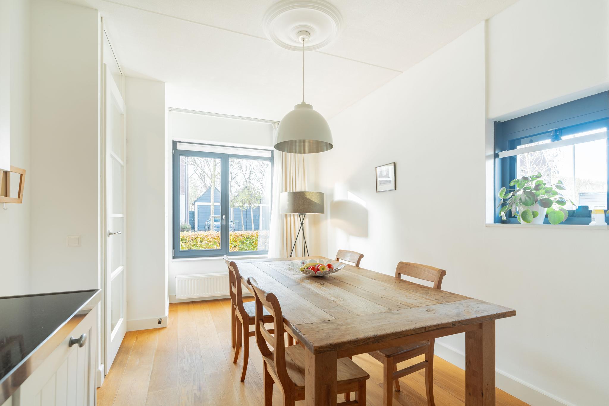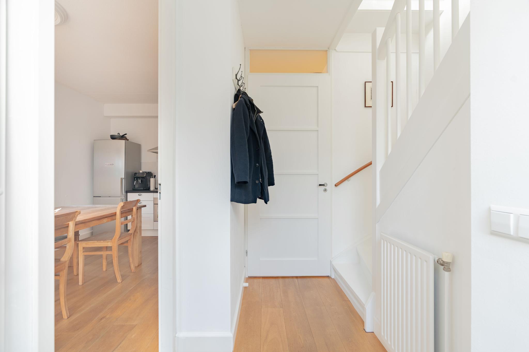 Ruime hal met toegang naar de ruime badkamer en woonkeuken op de begane grond. De landelijke keuken is voorzien van diverse inbouwapparatuur. Het natuurlijke licht in combinatie met de mooie afwerking en hoekligging geven de ruimte een rustige en sfeervolle ambiance. Aan de voorzijde bevindt zich een zonnige en unieke voortuin.