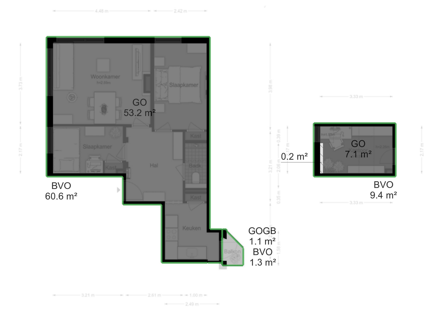 - Woonoppervlakte 52,3 m² (NEN2580);