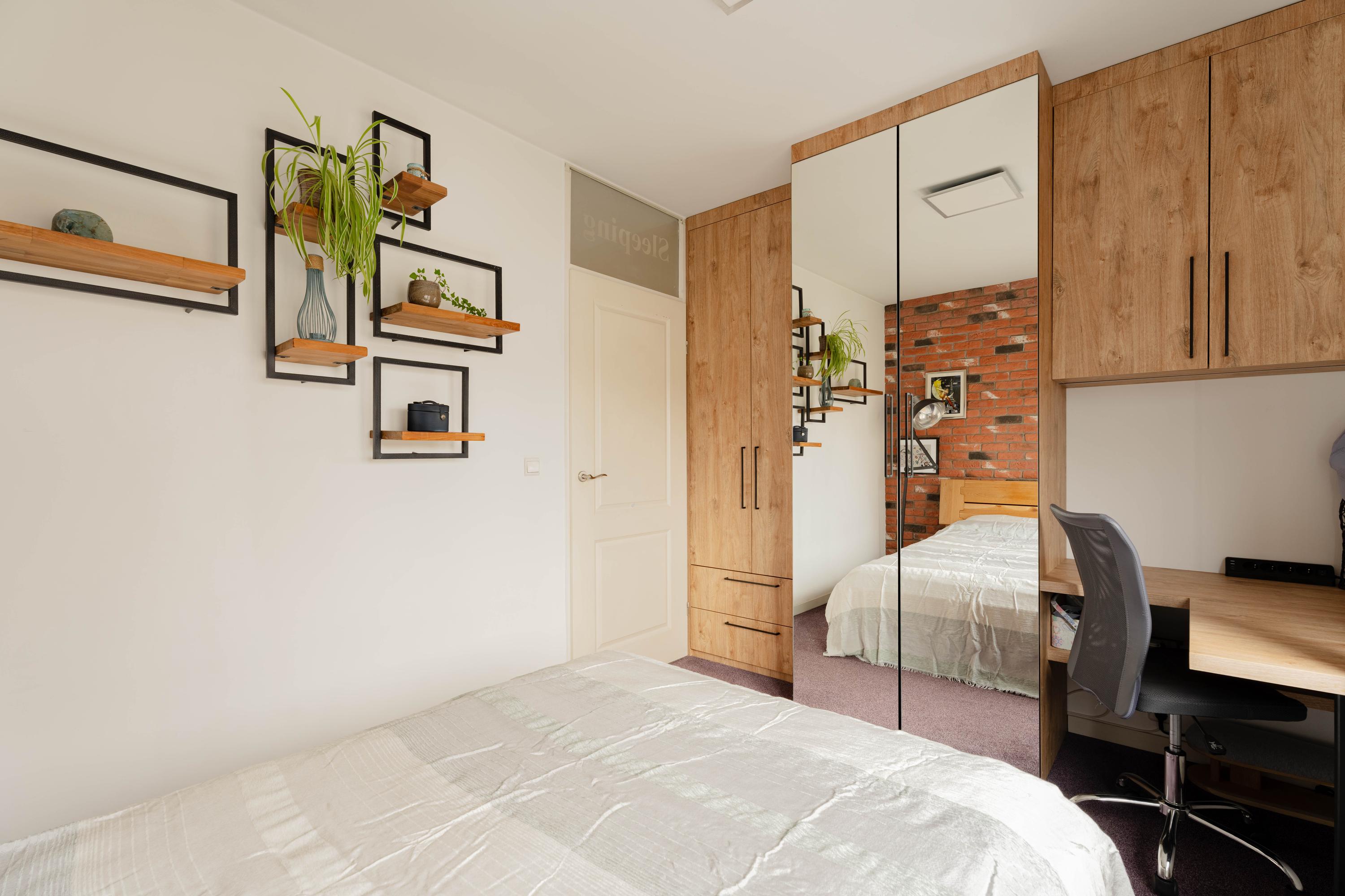 - Sfeervolle slaapkamer met grote kastenwand