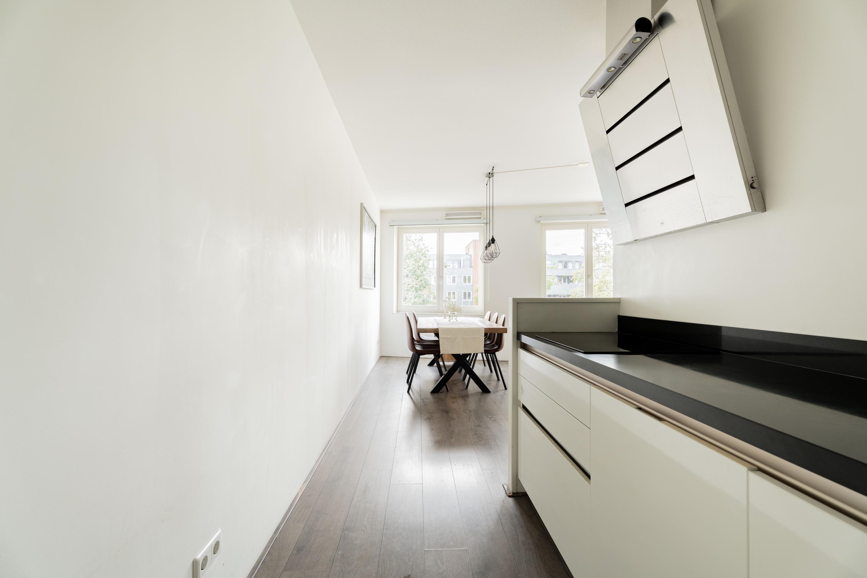 Via de nette gemeenschappelijke entree met lift bereik je de derde verdieping. De hal biedt toegang tot alle vertrekken. De royale woonkamer is opvallend licht en biedt voldoende ruimte voor een gezellige zithoek en eettafel. Vanuit de woonkamer stap je via openslaande deuren het balkon op, waar je heerlijk kunt genieten van het uitzicht over het water. De moderne open keuken is voorzien van diverse inbouwapparatuur, waaronder een inductiekookplaat, oven, afzuigkap, koelkast en vaatwasser. Ideaal voor wie van koken houdt. De woning beschikt over twee slaapkamers: een ruime hoofdslaapkamer en een tweede kamer die uitstekend dienstdoet als logeer- of werkkamer. De badkamer is stijlvol uitgevoerd met een inloopdouche, dubbele wastafel en wasmachine opstelling. Daarnaast is er een separaat toilet en een praktische bergkast.