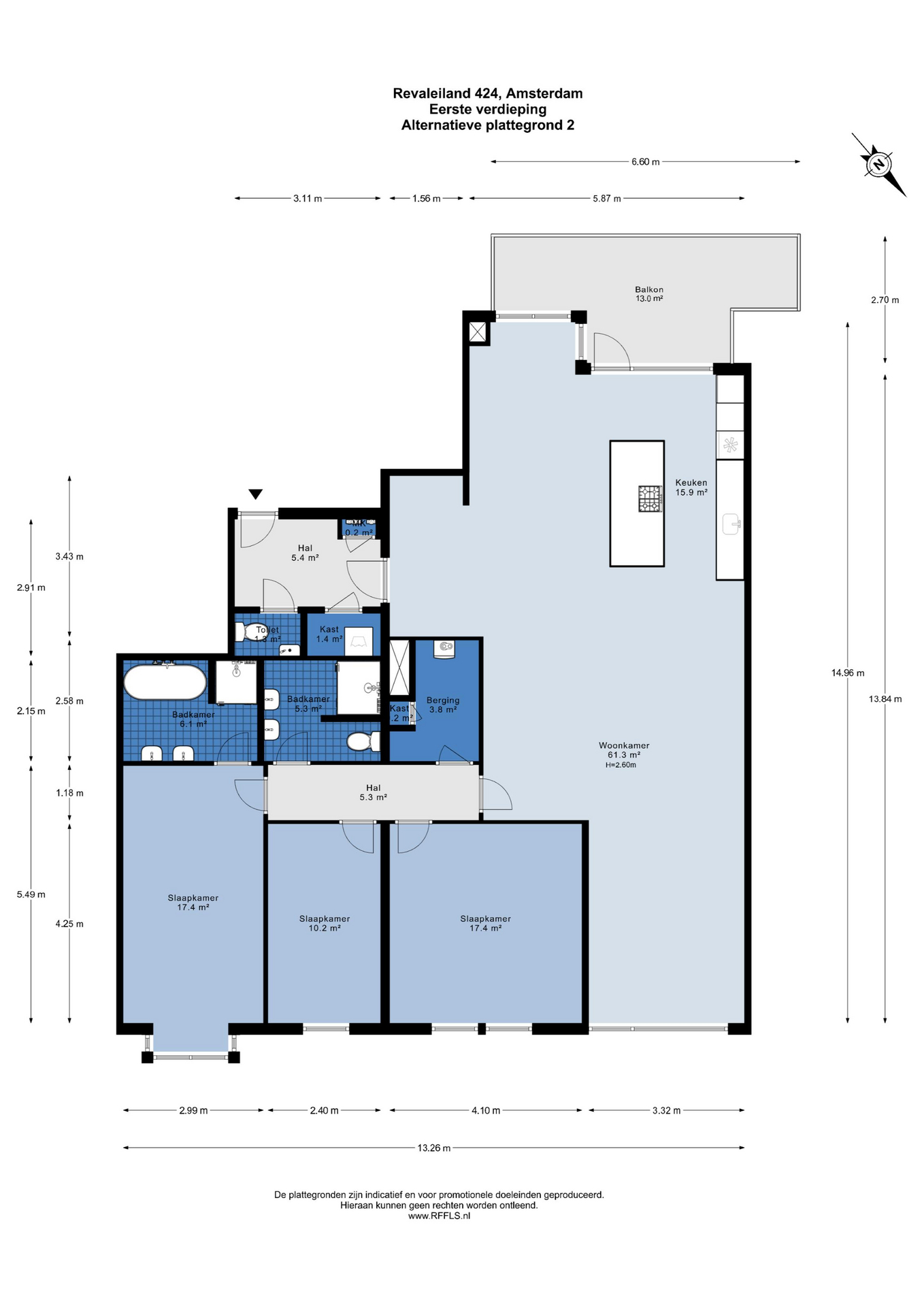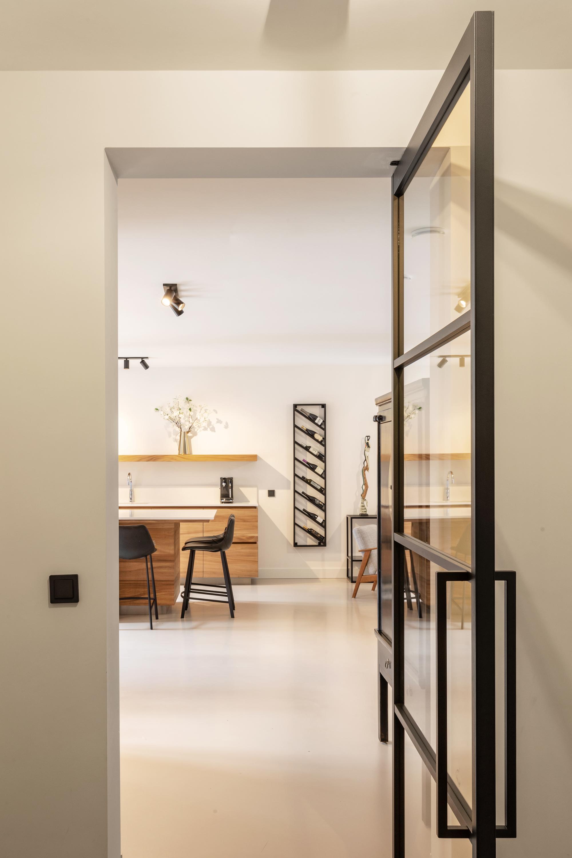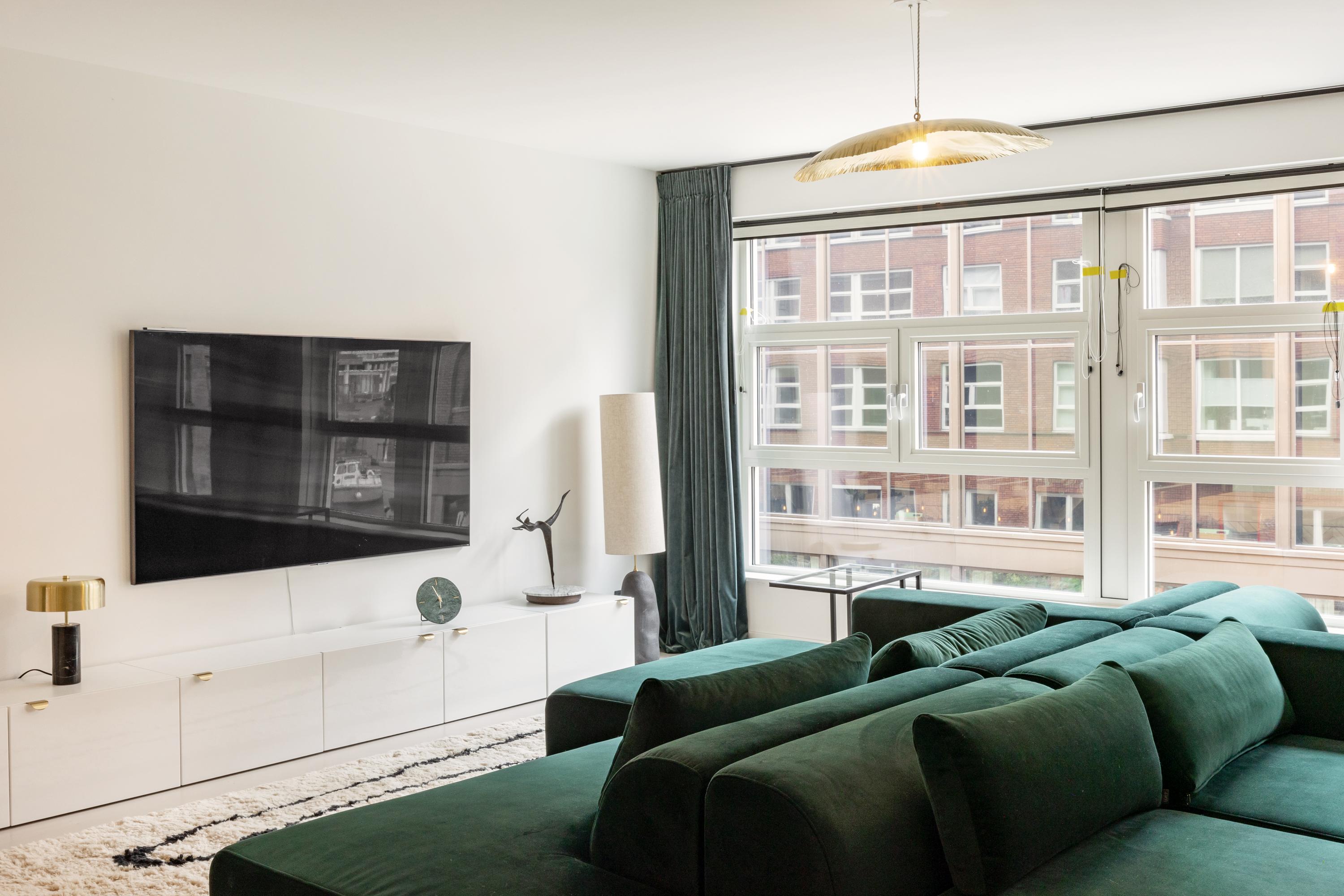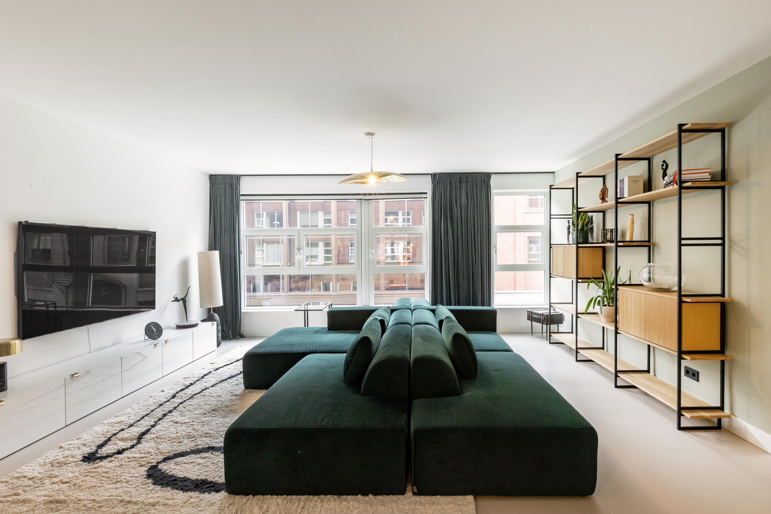 Via de lift of het trappenhuis bereik je de entree van de woning. De ruime hal biedt toegang tot een apart toilet en veel praktische opbergruimte. Direct valt de royale woonkamer op, met grote raampartijen die de ruimte in de ochtend en middag rijkelijk van natuurlijk licht voorzien. Aan de achterzijde bevindt zich de luxe, op maat gemaakte keuken met kookeiland en hoogwaardige inbouwapparatuur. De keuken en woonkamer worden subtiel met elkaar verbonden door een moderne bio-ethanol doorkijkhaard. Het appartement beschikt over drie goed bemeten slaapkamers die allen grenzen aan de hal met daartussen de luxe badkamer, voorzien van ligbad, inloopdouche, dubbele wastafel en een aparte wasruimte. Daarnaast vind je hier nog een separaat toilet en een ruime interne berging. Oorspronkelijk waren er twee badkamers; indien gewenst kan de ruimte eenvoudig opnieuw worden opgesplitst. Een vierde slaapkamer behoort eveneens tot de mogelijkheden (zie alternatieve plattegronden).