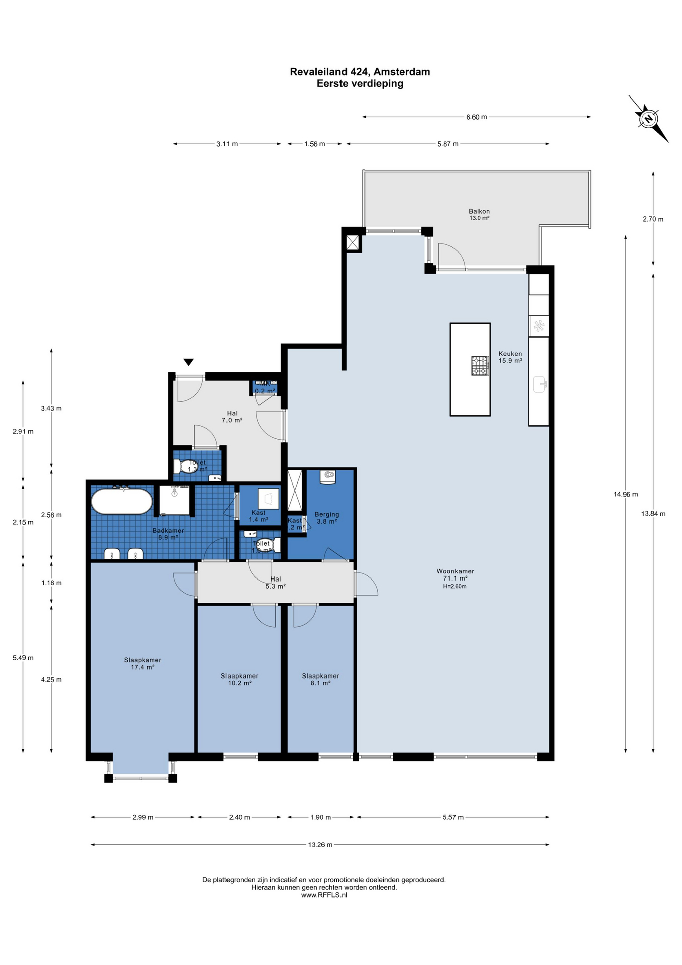 Welkom in dit exclusieve appartement van 158 m², gelegen op de eerste verdieping van een modern en duurzaam complex uit 2020. Hier woon je op het rustige Revaleiland, omringd door water en toch op loopafstand van het centrum van Amsterdam. De woning is volledig gelijkvloers, hoogwaardig afgewerkt en biedt drie slaapkamers, een luxe woonkeuken met kookeiland en een royaal balkon op het zuiden van 13 m². Dankzij energielabel A, vloerverwarming en uitstekende isolatie geniet je van maximaal comfort en lage energielasten.