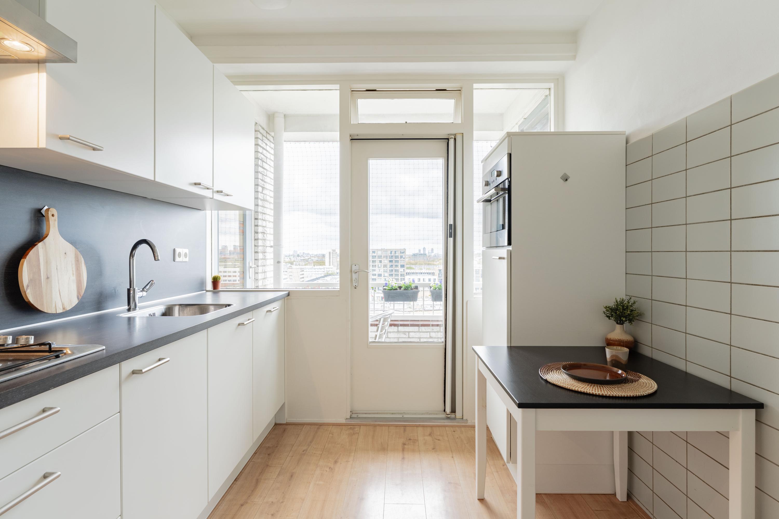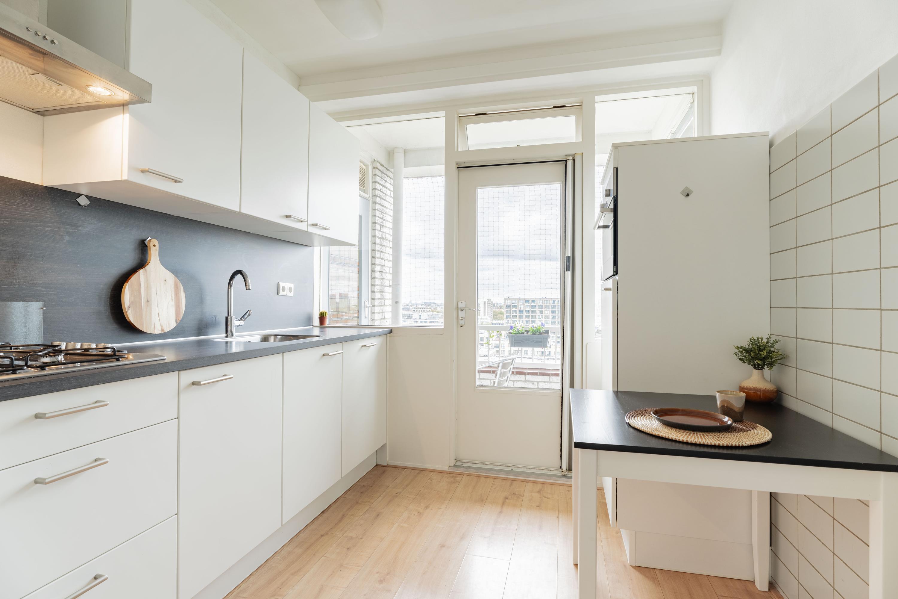 RUIM EN LICHT HOEKAPPARTEMENT VAN 65 M² MET O.A. EEN PRACHTIG UITZICHT, RUIME SLAAPKAMER, BALKON OP HET OOSTEN, LIFT EN BERGING, NABIJ DE GEZELLIGE HOOFDDORPPLEINBUURT, KORTOM, ZEKER EEN BEZICHTIGING WAARD!