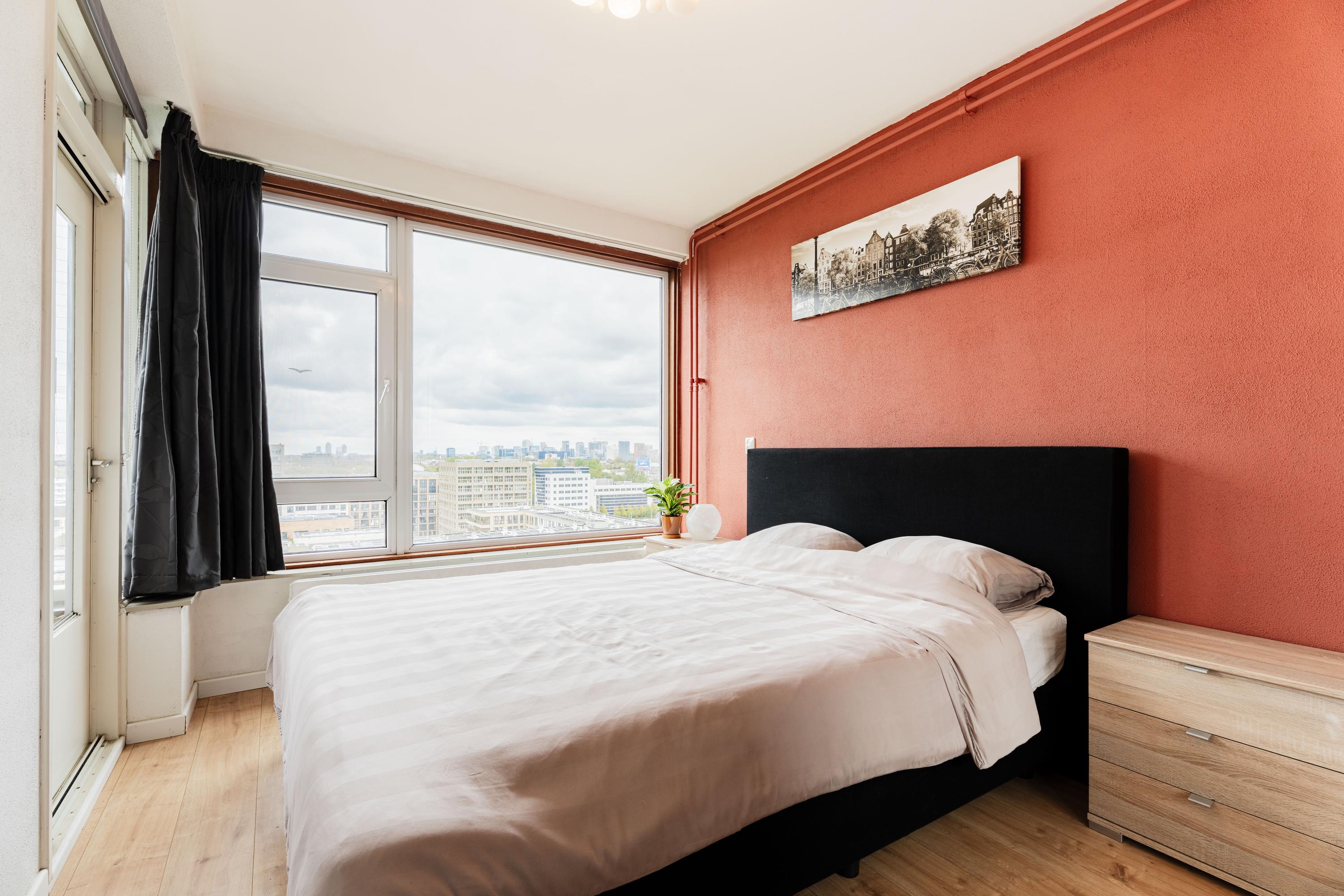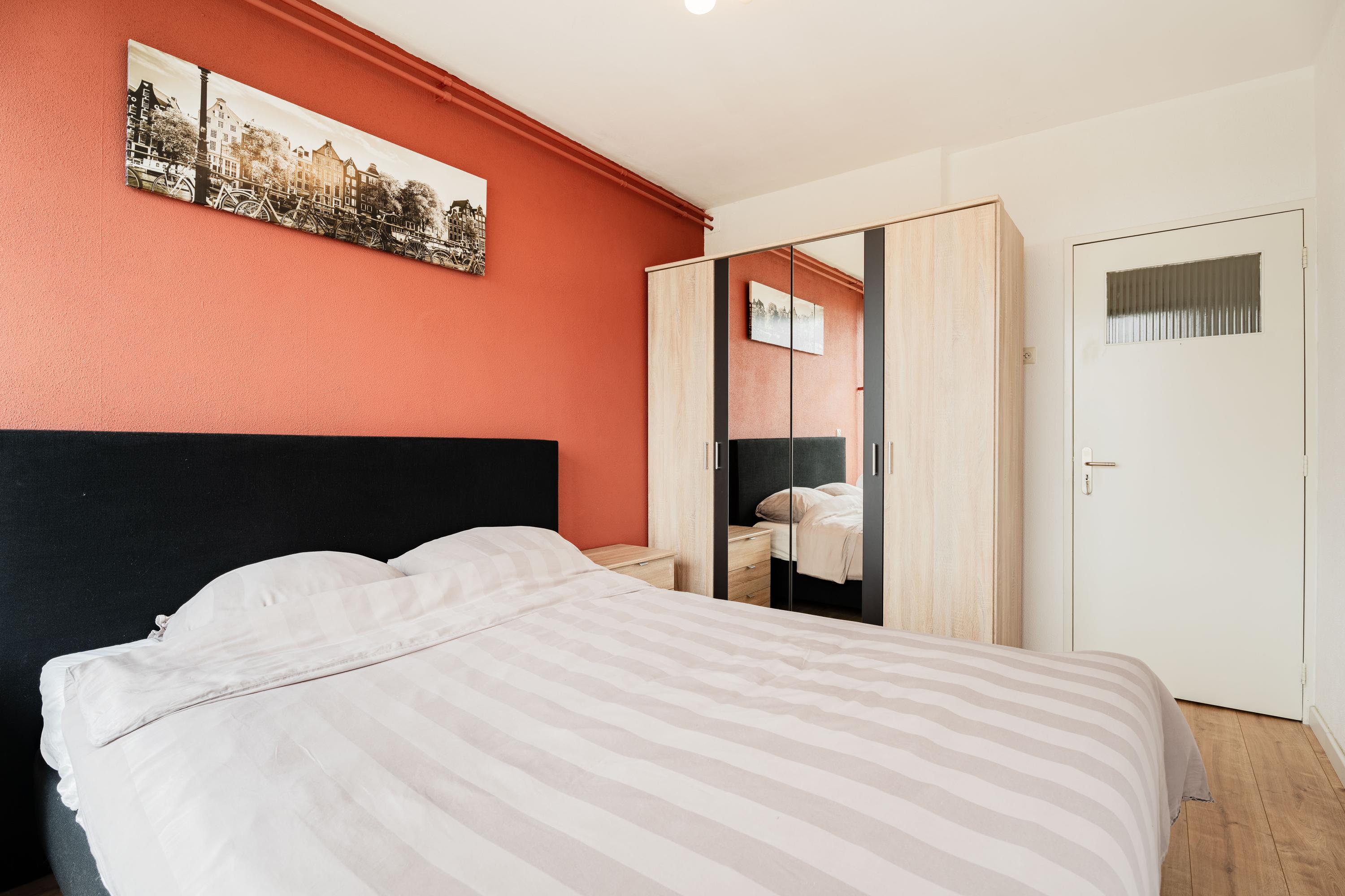 De slaapkamer is ruim van formaat, heerlijk licht en keurig afgewerkt.